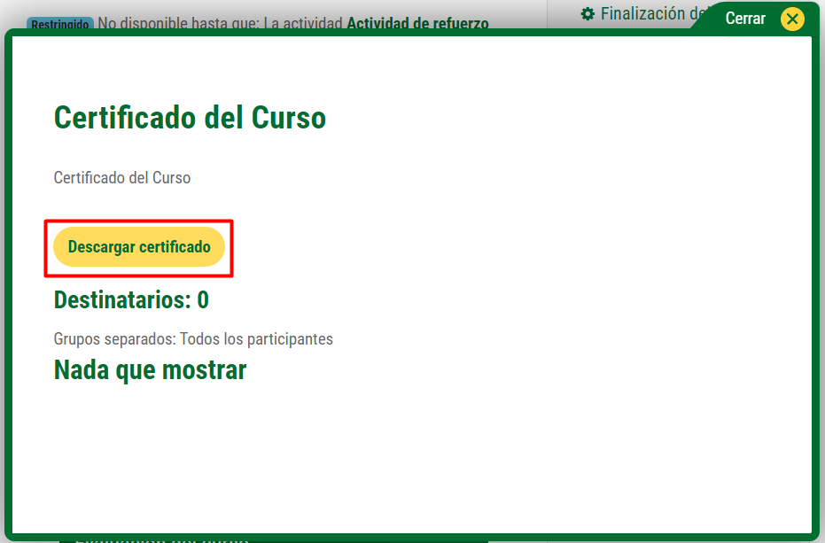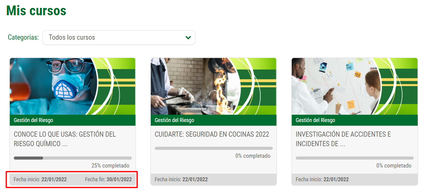 Fechas: Conozca el periodo de duración del curso en la sección "Mis cursos" de la página principal.