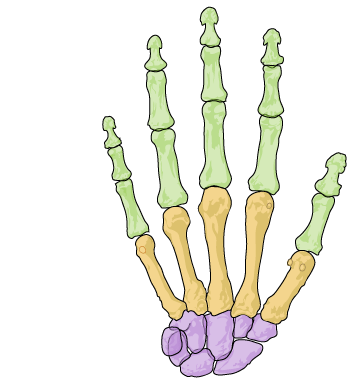 La mano y la muñeca están formadas por huesos,