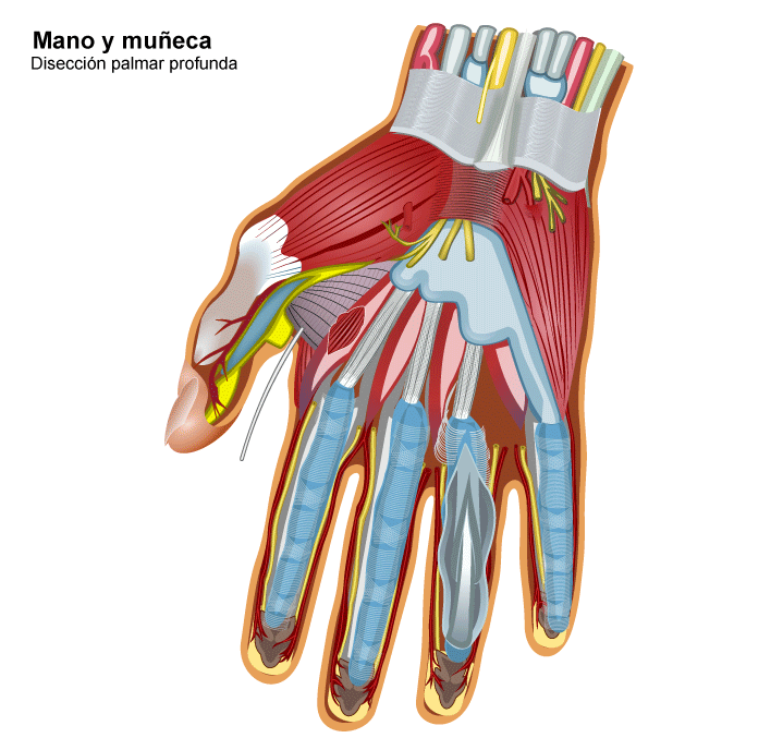 capa más profunda de la mano, su función conjunta es ayudar a la