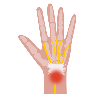 ellos presionan contra el nervio mediano. Esto hace que parte de la mano duela o