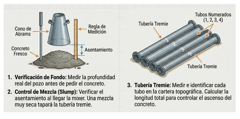 13. Cuando esté lista la excavación se debe verificar la longitud del pilote y ajustar el pedido de concreto tremie para