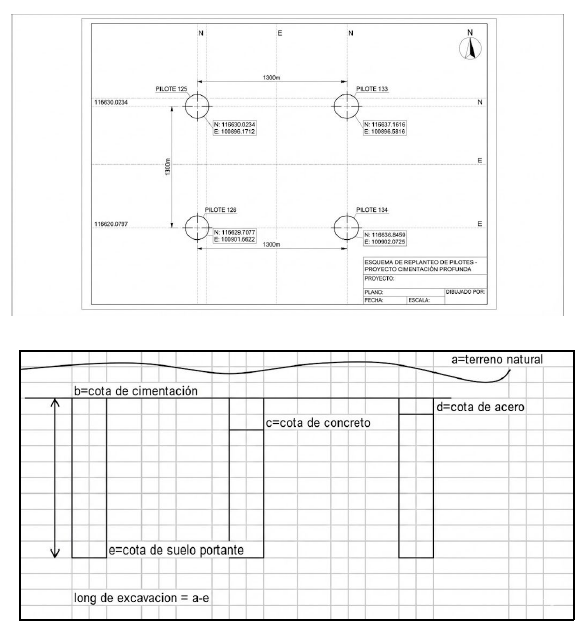 3. En un gráfico se establece la cota de excavación, la cota del concreto y la cota de la parrilla de acuerdo con el