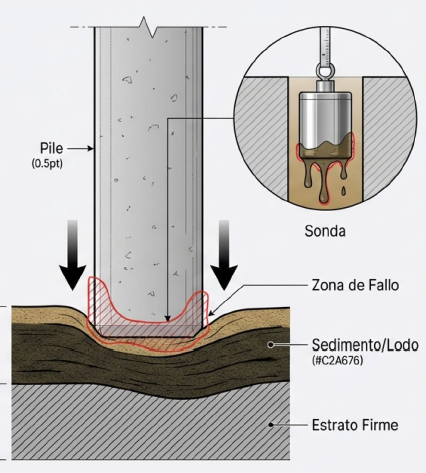El riesgo es serio: el pilote puede no apoyar sobre el estrato competente previsto en el estudio de suelos, provocando asentamientos o incluso fallas en la estructura.