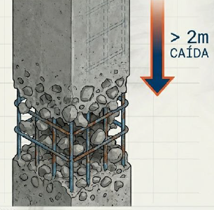 Exactamente, eso es segregación: cuando el agregado grueso se separa de la pasta de cemento. Ocurre si el concreto se deja caer libremente desde más de dos metros o si no logra fluir adecuadamente entre la armadura. Si al descabezar el pilote el concreto se desmorona con facilidad o se observan piedras sueltas, estás frente a una segregación. Esto es crítico porque crea vías de ingreso para el agua y acelera la corrosión del acero.
